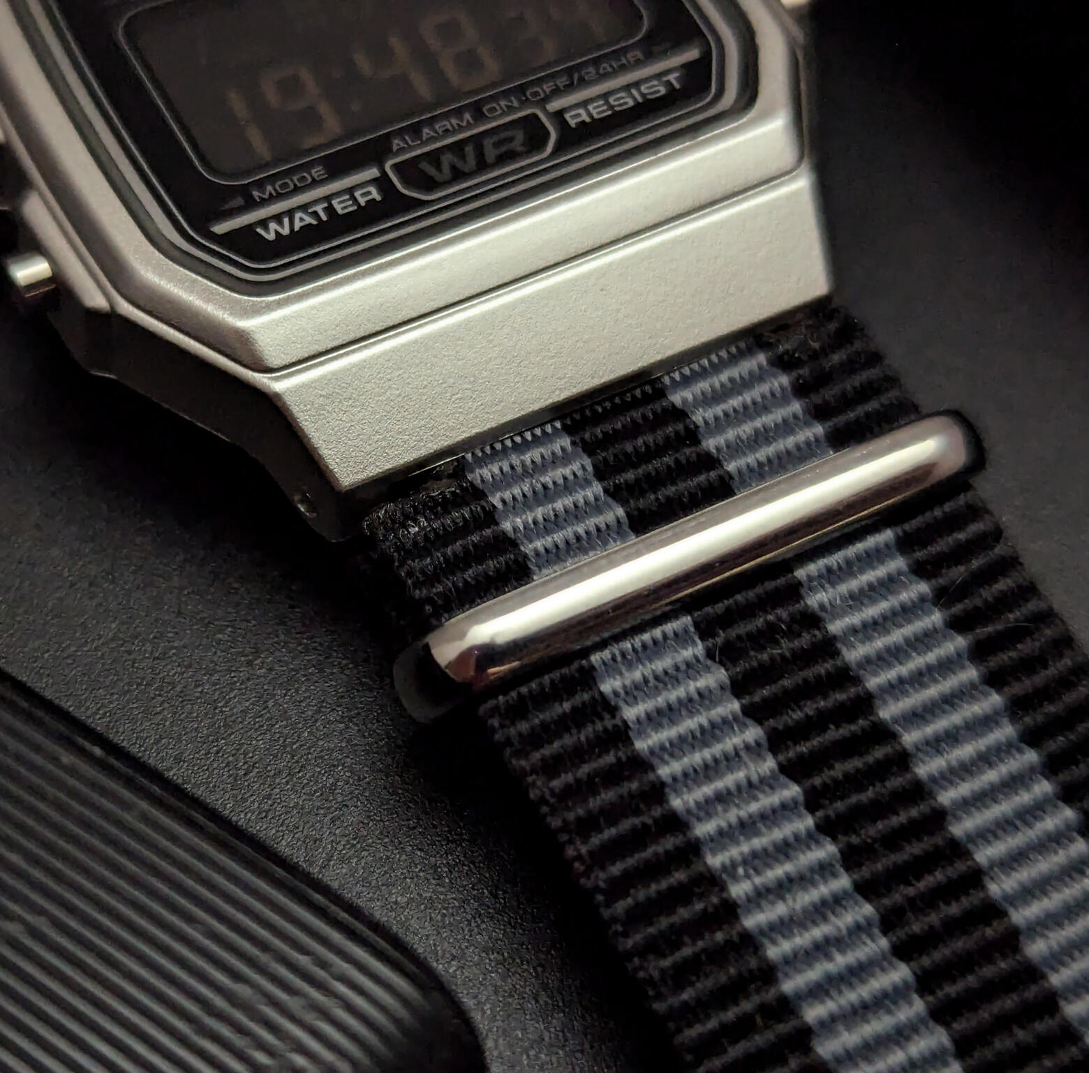 The same way nylon straps are heat-sealed during manufacturing, I realized I can manually make notches in my NATOs by melting the material in the precise points I want to create notches, cutting them out, and heat-sealing again to finalize the process.Since 2023, I've been using this method to create notched NATO straps specifically tailored for Casio watch lugs, blending the strap perfectly in proportion to the watch.