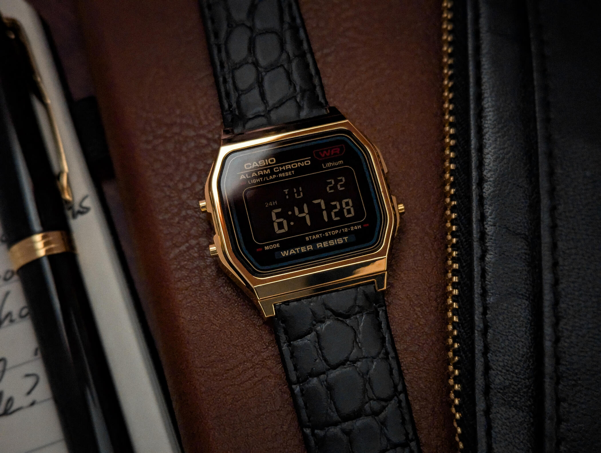 Custom Casio watches with straps perfectly tailored to their unique lug widths.Sometimes the strap doesn't need to perfectly reach the full width of the watch, as is the case with my Vintro mod, which features a 20 mm notched leather strap as opposed to the full width of 22 mm I typically have with my NATOs.Be it nylon or leather straps, cohesiveness is the aesthetic goal of all my mods, so I always pay attention to the proportions of the watch and strap, and notch accordingly.